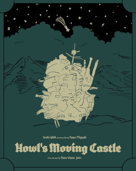 Hayao Miyazaki is one of my favorite filmakers and Howl's Moving Castle may be my favorite of his films. Whenever I've found time the last little while I've been working on a poster to display my affection for the film. This poster was inspired by an old book cover from Jules Verne's From the Earth to the Moon.